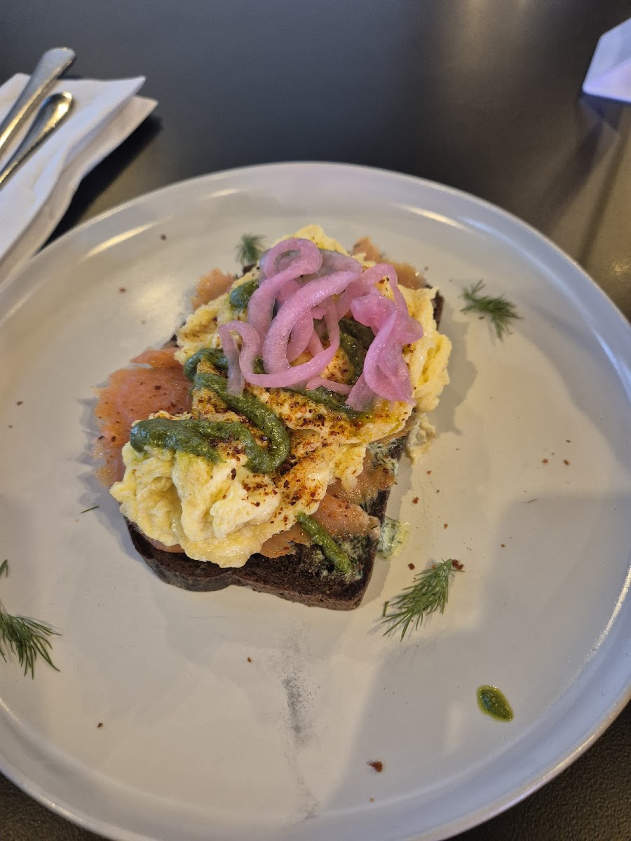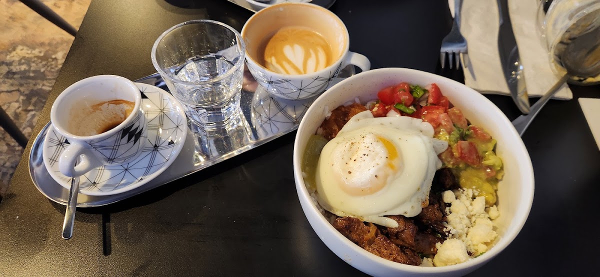 Love the coffee. The biscuits are amazing and fresh every day. I love the creme Fraiche in place of butter on bread items. Come in for a coffee, a snack, a meal, or any of the desserts. The patio is cool and can be a little loud with street noise. More than anything the service is amazing. They always take care of me. The rate error is managed seamlessly for every customer and they’re always working discreetly to offer the best service to every customer.